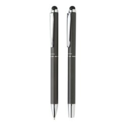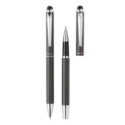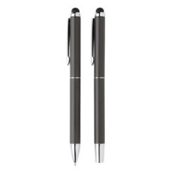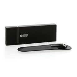Zestaw piśmienny Swiss Peak, długopis i pióro kulkowe z nadrukiem Twojego logo, materiał: aluminium, pu, kolor: czarny