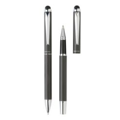 Ekskluzywny zestaw piśmienny, długopis i pióro kulkowe, długopis posiada wkład Dokumental® w kolorze niebieskim, długość pisania ok. 1200 m, pióro kulkowe posiada wkład Dokumental® w kolorze niebieskim, długość pisania ok. 400 m, w ozdobnym etui z PU i czarnym pudełku podarunkowym, ślad węglowy produktu: 0,49 kg CO2