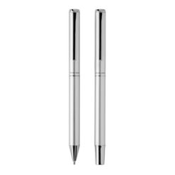 Zestaw piśmienny, długopis i pióro kulkowe, długopis posiada wkład Dokumental® w kolorze niebieskim, długość pisania ok. 1200 m, długopis i pióro kulkowe posiadają wkład Dokumental® w kolorze niebieskim, długość pisania długopisu ok. 1200 m, pióra kulkowego ok. 400 m, wykonane z aluminium z recyklingu z certyfikatem RCS, całkowita zawartość materiałów z recyklingu obliczona na podstawie wagi całkowitej przedmiotu: 17%, ślad węglowy produktu: 0,25 kg CO2