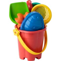 Zestaw plażowy, wiaderko, zawiera: łopatkę, grabki, sitko, szufelka, 2 foremki