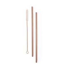 Zestaw 2 słomek wielokrotnego użytku ze stali nierdzewnej, miedziane wykończenie, czyścik i welurowy woreczek w komplecie