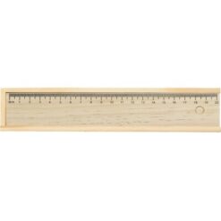 Zestaw szkolny w pudełku zamykanym wieczkiem z nadrukowaną linijką 20 cm, w komplecie znajduje się: 12 kredek, gumka oraz temperówka, produkt wykonany między innymi z drewna i plastiku