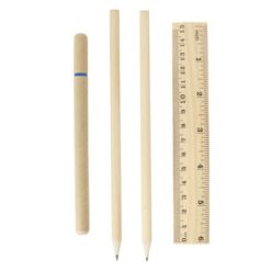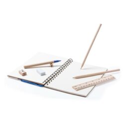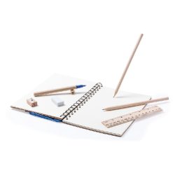 Zestaw szkolny, notatnik (ok. A5, 70 pustych kartek), piórnik na zamek błyskawiczny, długopis z trzonem z kartonu z recyklingu, 2 ołówki, linijka, temperówka i gumka