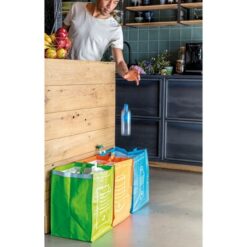 Zestaw 3 toreb do segregacji odpadów: metalu, papieru i plastiku, wykonane z tkaniny PP woven, ślad węglowy produktu: 1,88 kg CO2