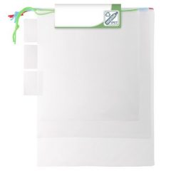 Zestaw 3 woreczków RPET na owoce i warzywa w różnych rozmiarach: 26 x 28 cm, 30 x 33 cm, 30 x 40 cm, przy każdym woreczku specjalna metka pod znakowanie