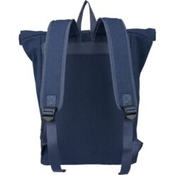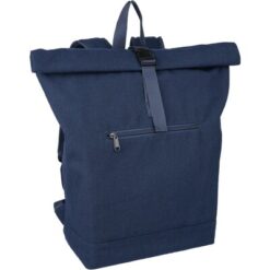 Zwijany plecak, pojemność 15L, duża komora zapinana na zamek z przegrodą na laptopa 15″, dwie wewnętrzne kieszenie, jedna zewnętrzna kieszeń, konstrukcja obejmuje uchwyt do przenoszenia na górze, wyściełane regulowane szelki, mała przednia kieszeń na zamek, maksymalne obciążenie: 14 kg, produkt wykonany polibawełny z recyklingu (330 g/m²), podszewka z poliestru 210D, plastikowe zapięcie na klamrę