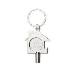 Brelok do kluczy 3 w 1, klucz do odpowietrzania grzejnika, żeton do wózka na zakupy, otwieracz do butelek, wykonany z metalu z recyklingu, całkowita zawartość materiałów z recyklingu obliczona w oparciu o wagę całkowitą przedmiotu: 80%