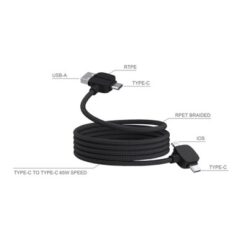 Kabel do ładowania i synchronizacji Urban Vitamin Stockton 65W z nadrukiem Twojego logo, materiał: rpet, tpe, kolor: czarny