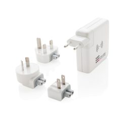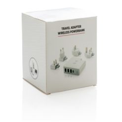 Adapter podróżny, bezprzewodowy power bank 6700 mAh z nadrukiem Twojego logo, materiał: plastik, kolor: biały