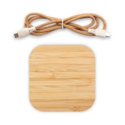 Bambusowa ładowarka bezprzewodowa 10W B’RIGHT, działa z urządzeniami posiadającymi możliwość ładowania indukcyjnego, 2 wyjścia USB 5V/1-2A, wejście USB-C, w komplecie korkowy kabel z 2 końcówkami USB-C wykonanymi z włókien słomy pszenicznej