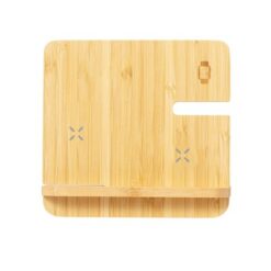 Bambusowa ładowarka bezprzewodowa 15W, 3 w 1, stojak na telefon z nadrukiem Twojego logo, materiał: bambus, kolor: drewno