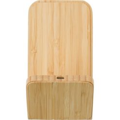 Bambusowa ładowarka bezprzewodowa 5W, stojak na telefon z nadrukiem Twojego logo, materiał: bambus, kolor: drewno