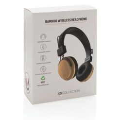 Słuchawki bezprzewodowe BT 5.0, nauszne, składane, funkcja odbierania połączeń, wbudowany mikrofon, nauszniki słuchawek wykonane z bambusa, opaska na głowę wykonana z rPET, w pełni naładowany akumulator o pojemności 200 mAh umożliwia odtwarzanie muzyki do 4 godzin, ponowne naładowanie w 2 godziny, zasięg do 10 m