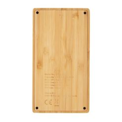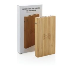 Bezprzewodowy power bank 4000 mAh, ładowarka bezprzewodowa 5W, 5 diod wskazujących poziom naładowania, wykonany z naturalnego bambusa, wbudowany akumulator litowo-polimerowy klasy A o dużej gęstości i trwałości, możliwość ładowania kablem i bezprzewodowo, w pełni naładowane urządzenie może naładować telefon do 2 razy, bezprzewodowe ładowanie jest kompatybilne ze wszystkimi urządzeniami posiadającymi możliwość ładowania indukcyjnego, wejście 5V/2A, wyjście USB 5V/2A, wyjście bezprzewodowe 5W 5V/1A, kabel micro USB w komplecie
