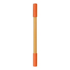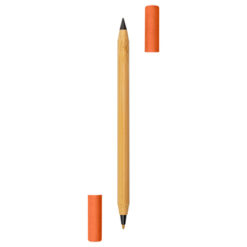 Bambusowy długopis 2 w 1, „wieczny” ołówek | Mikayla z nadrukiem Twojego logo, materiał: plastik, bambus, papier, kolor: pomarańczowy