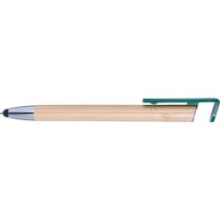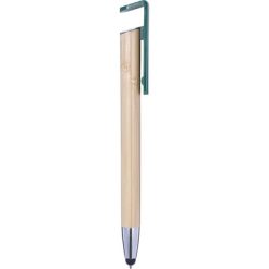 Bambusowy długopis, touch pen, stojak na telefon z nadrukiem Twojego logo, materiał: plastik, bambus, kolor: zielony