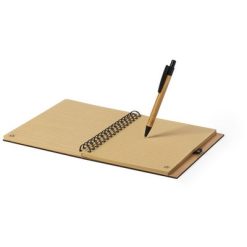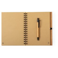 Notatnik bambusowy (ok. A5, 80 kartek w linie), twarda okładka, długopis z bambusowym trzonem w komplecie, wkład długopisu w czarnym kolorze, spiralne bindowanie