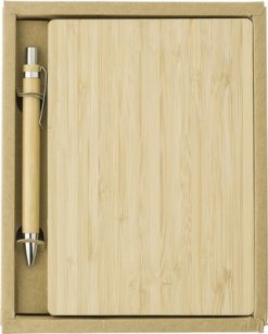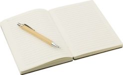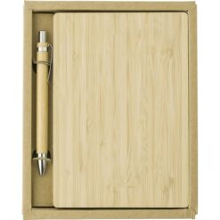 Bambusowy notatnik (ok. B6, 128 kartek w linie), bambusowy długopis w komplecie, w pudełku z papieru kraftowego