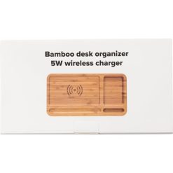 Bambusowy organizer na biurko, ładowarka bezprzewodowa 5W z nadrukiem Twojego logo, materiał: plastik, bambus, kolor: drewno