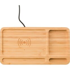 Ładowarka bezprzewodowa 5W, organizer na biurko, wykonany z bambusa, działa z telefonami posiadającymi możliwość ładowania indukcyjnego, wyjście bezprzewodowe 5V/0.8A 5W, kabel USB w komplecie