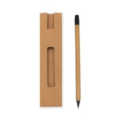 „Wieczny” ołówek z gumką B’RIGHT, naostrzony, bambusowy trzon, dzięki wykorzystaniu specjalnej wolnościerającej się grafitowej końcówki długość pisania ołówka to około 20 000 metrów, kartonowe etui w komplecie