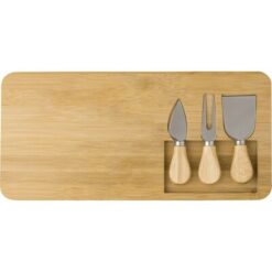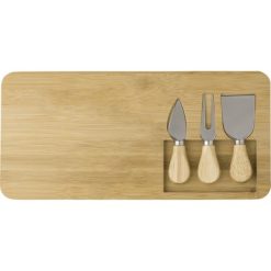 Zestaw do sera, bambusowa deska do sera, nóż, widelec i łopatka do sera, pakowany w kartonowe pudełko