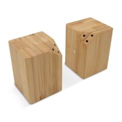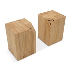 Bambusowy zestaw do soli i pieprzu | Alfred z nadrukiem Twojego logo, materiał: plastik, bambus, kolor: drewno