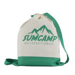 Dwukolorowy worek, posiada szerokie paski na ramię umożliwiające noszenie na plecach, pomieści drobne zakupy lub strój sportowy na siłownię, produkt wykonany z bawełny o gramaturze 140 g/m2