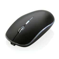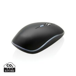 Bezprzewodowa mysz komputerowa, szybkie połączenie 125 Hz, przycisk do zmiany czułości działania, wbudowany akumulator litowo polimerowy o pojemności 300 mAh, ponowne ładowanie w 3 godziny, nadajnik USB w komplecie, grawer ukazuje podświetlaną powierzchnię, ślad węglowy produktu: 0,71 kg CO2