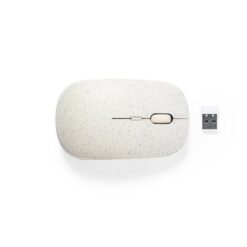 Bezprzewodowa mysz komputerowa ze słomy pszenicznej z nadrukiem Twojego logo, materiał: plastik, słoma pszeniczna, kolor: neutralny