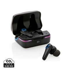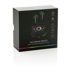 Bezprzewodowe słuchawki douszne RGB z ENC Gaming Hero z nadrukiem Twojego logo, materiał: plastik, kolor: czarny