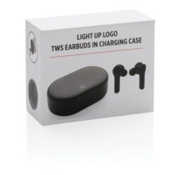 Bezprzewodowe słuchawki douszne TWS Light Up Logo z nadrukiem Twojego logo, materiał: plastik, kolor: czarny