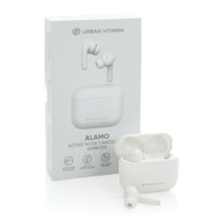 Bezprzewodowe słuchawki douszne Urban Vitamin Alamo ANC z nadrukiem Twojego logo, materiał: plastik, kolor: biały