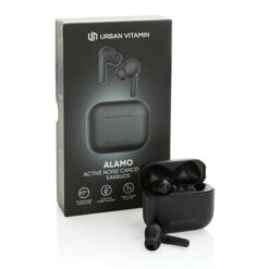 Bezprzewodowe słuchawki douszne Urban Vitamin Alamo ANC z nadrukiem Twojego logo, materiał: plastik, kolor: czarny