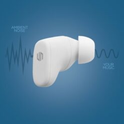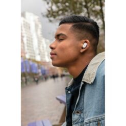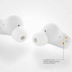Bezprzewodowe słuchawki douszne z systemem aktywnej redukcji szumów (ANC), funkcja redukcji szumów otoczenia (ENC), poziom redukcji szumów do 40 dB, wodoodporne IPX5 (całkowita ochrona przed strumieniem wody płynącej z różnych kierunków z wydajnością do 12,5 litra na minutę), dotykowy panel sterowania, do 5 godzin odtwarzania na jednym ładowaniu, etui ładujące zapewnia 20 godzin odtwarzania, etui można ładować za pomocą kabla USB typu C lub ładowarki bezprzewodowej, nie zawiera PVC, opakowanie nie zawiera plastiku, ślad węglowy produktu: 0,87 kg CO2