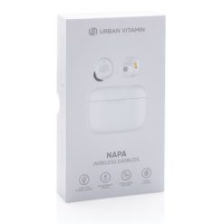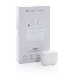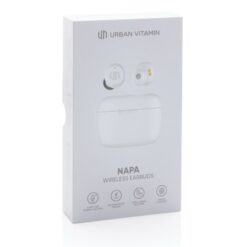Bezprzewodowe słuchawki douszne Urban Vitamin Napa z nadrukiem Twojego logo, materiał: plastik, pc, kolor: biały