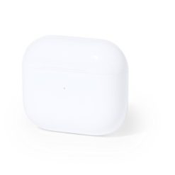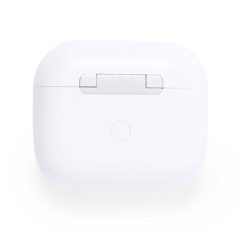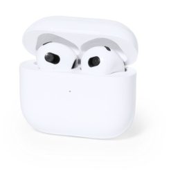 Bezprzewodowe słuchawki douszne z nadrukiem Twojego logo, materiał: plastik, kolor: biały
