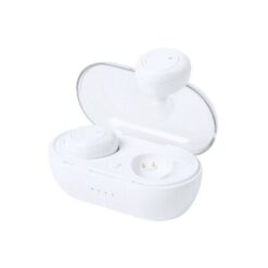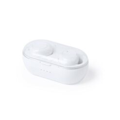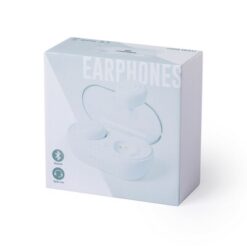 Bezprzewodowe słuchawki douszne z nadrukiem Twojego logo, materiał: plastik, kolor: biały
