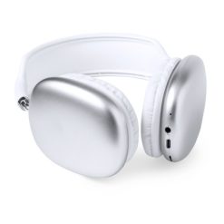 Bezprzewodowe słuchawki nauszne, radio z nadrukiem Twojego logo, materiał: plastik, kolor: biały