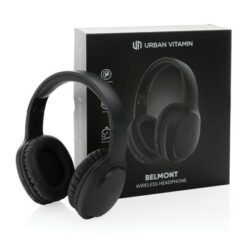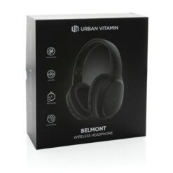 Bezprzewodowe słuchawki nauszne Urban Vitamin Belmond z nadrukiem Twojego logo, materiał: plastik, pu, kolor: czarny