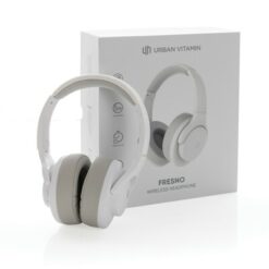 Bezprzewodowe słuchawki nauszne Urban Vitamin Fresno z nadrukiem Twojego logo, materiał: plastik, pu, kolor: biały