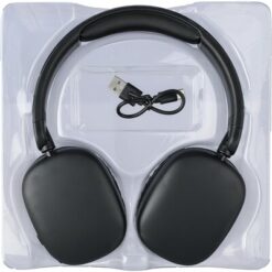 Bezprzewodowe słuchawki nauszne z nadrukiem Twojego logo, materiał: plastik, kolor: czarny