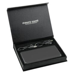 Bezprzewodowy power bank 10000 mAh z przyssawkami Mauro Conti, bezprzewodowa ładowarka 10W, działa z urządzeniami posiadającymi możliwość ładowania indukcyjnego, 2 wyjścia USB (max. 5V/2.4A, całkowite max. 3A) do ładowania dwóch urządzeń jednocześnie, wyjście USB-C 5V/2.4A 9V/2A 12V/1.5A, wejście micro USB oraz typu C, kable micro USB oraz USB-C w komplecie, w ozdobnym pudełku