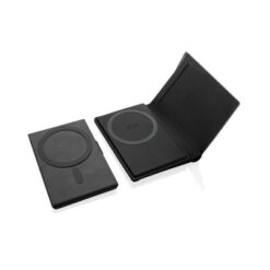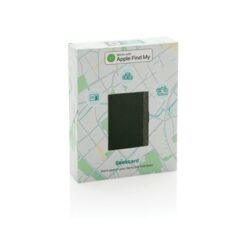 Portfel z lokalizatorem, bezprzewodowy lokalizator, wykonany z certyfikowanego recyklingowanego poliestru RCS i aluminium, obsługa technologii Apple Find My, powiadomienia o zgubieniu portfela, funkcja precyzyjnego lokalizowania na całym świecie, wbudowany dźwiękowy sygnał naprowadzający, akumulator ładowany bezprzewodowo, czas pracy do 6 miesięcy po godzinnym ładowaniu, miejsce na 3 karty oraz dodatkową przestrzeń, opakowanie prezentowe FSC® mix