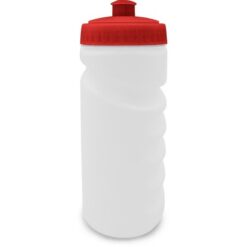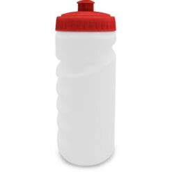 Bidon 500 ml z kolorową zakrętką, posiada zamknięcie w postaci dzióbka ułatwiającego picie oraz profilowanie, dzięki któremu bidon lepiej leży w dłoni, produkt wykonany z PE i PP