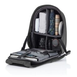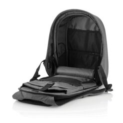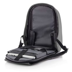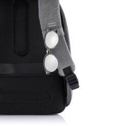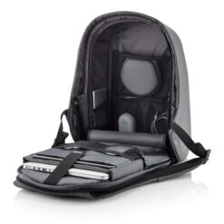 Plecak chroniący przed kieszonkowcami Bobby Hero Regular, wodoodporny i odporny na przecięcia materiał, wykonany z materiału RPET, ukryte zamki i kieszenie, wewnątrz miękkie przegrody na laptopa 15,6″ i tablet do 12,9″, zintegrowany port USB do ładowania telefonów (power-bank nie jest dołączony), odblaskowe paski zwiększające widoczność, pasek do zamocowania na walizce, wzór zastrzeżony®, ślad węglowy produktu: 6,68 kg CO2