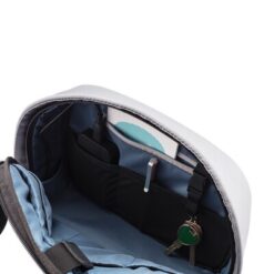 Plecak chroniący przed kieszonkowcami Bobby Sling z miękkim paskiem na ramię, wodoodporny i odporny na przecięcia materiał, 3 punktowa klamra bezpieczeństwa, zintegrowany port USB do ładowania telefonów (power-bank nie jest dołączony), kieszeń RFID, ukryte zamki i kieszenie, ślad węglowy produktu: 3,38 kg CO2