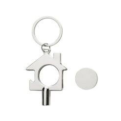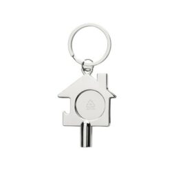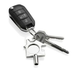 Brelok do kluczy 3 w 1, klucz do odpowietrzania grzejnika, żeton do wózka na zakupy, otwieracz do butelek, wykonany z metalu z recyklingu, całkowita zawartość materiałów z recyklingu obliczona w oparciu o wagę całkowitą przedmiotu: 80%