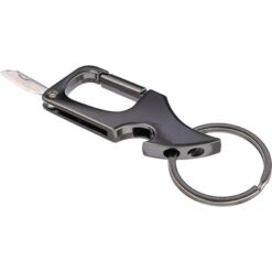 Brelok do kluczy, otwieracz do butelek z karabińczykiem umożliwiającym przypinanie, wyposażony w mały nóż, który sprawdzi się przy otwieraniu pudełek, zapakowany w brązową kopertę kartonową, produkt wykonany z metalu