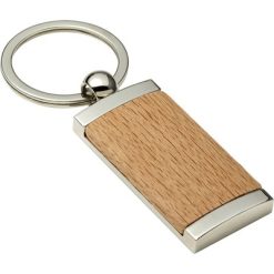 Prostokątny brelok do kluczy z elementem z drewna bukowego
